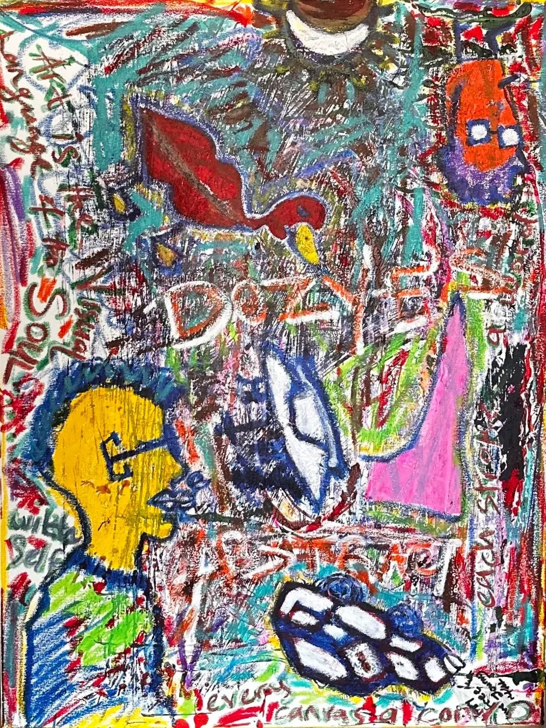 stories are not meant to be literally illustrated. they are embedded in the medium itself through gesture, pressure, and the act of spreading color across the canvas.